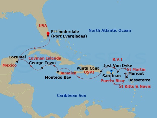 カリブ海( サン・ファン ~ フォート・ローダデール/マイアミ/フロリダ州 )