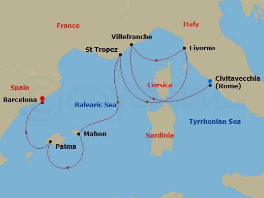 西ヨーロッパ( チビタベッキア/ローマ ~ バルセロナ )