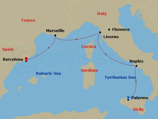 地中海( パレルモ/シチリア島 ~ バルセロナ )