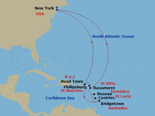 カリブ海( ニューヨーク (ニューヨーク クルーズターミナル) ~ サウサンプトン/ロンドン )