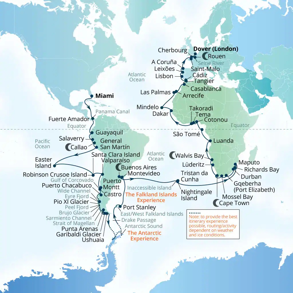 【フル区間】ワールドクルーズ( マイアミ/フロリダ州 ~ ドーバー/ロンドン )