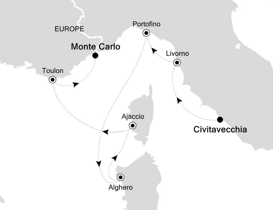 地中海( チビタベッキア/ローマ ~ モンテカルロ )