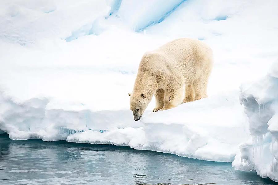 ●流氷やスピッツベルゲン島の切り立った山々、急斜面の渓谷、断崖絶壁、巨大氷河など、絶景が続きルートを進みます。