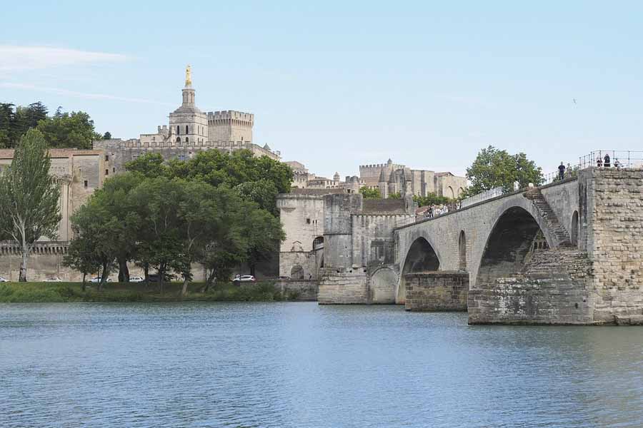 歴史的建物や教会が立ち並ぶローヌ川ほとりの美しい街、アヴィニヨン。アヴィニヨン歴史地区は世界遺産に登録され教皇宮殿やノートルダム・デ・ドン大聖堂、サン・ベネゼ橋など多くの見どころが詰まっています。サン・ベネゼ橋は城壁の外側にある石造りのアーチ橋で「アヴィニヨンの橋」として知られフランスの歌「アヴィニヨンの橋の上で」の題材です。