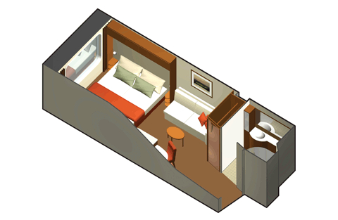 海側ツインまたはキング / ベランダ(視界不良)・シャワー付 / 18㎡+ベランダ3.9㎡ / 6階