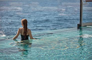 4カ所に設けられた解放的なプール。プールサイドでのひと時も、海とのつながりを感じるこの船ならではの時間です。