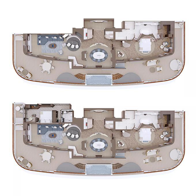 世界の海を舞台に、極上のひとときを提供するラグジュアリークルーズ船です。最先端の船舶技術と洗練されたデザインが融合し、航海そのものを目的とする、唯一無二の体験を実現しました。船内は、静謐と優雅さを追求した空間設計が施され、スイートクラスを中心とした客室は、すべてが上質な寛ぎを約束します。パノラマビューを楽しめるラウンジや、世界各地の食文化を昇華させたガストロノミー、心身を解き放つスパ&ウェルネス施設など、あらゆる瞬間が特別な記憶として刻まれます。