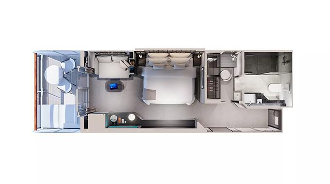 ツインまたはダブル / ベランダ・シャワー付 / 149㎡+テラス75㎡ / 6階