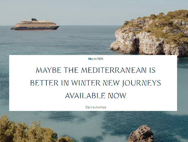 2026年12月から2027年3月までのエクスプローラⅡによる冬の地中海クルーズが発表になりました。