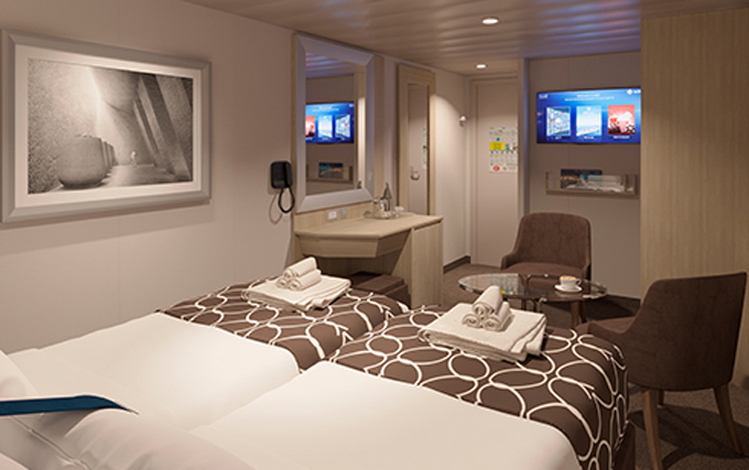 ■ワードローブ ■タオル ■インタラクティブテレビ ■電話 ■インターネットアクセス(有料) ■ミニバー ■セーフティボックス ■エアコン ■ドライヤー ■アメニティ(シャンプー、ハンドソープ、ボディーソープ、石けん、シャワーキャップ) ■音声対応人工知能装置 世界初デジタル・クルーズ・アシスタントのZoe(ゾーエ)