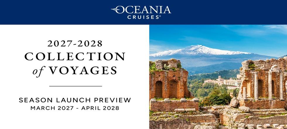 2025/09/18船会社オーシャニア クルーズより、230以上のコースが含まれる2027-2028年のクルーズコレクションが発表されました。
