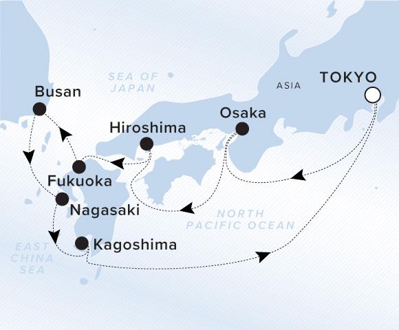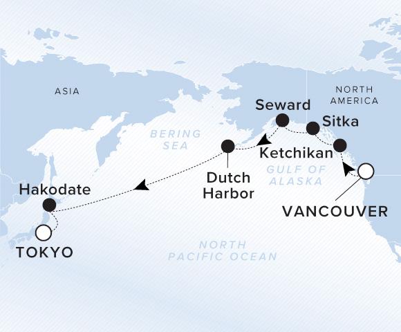 アラスカを巡り、秋の日本を目指す太平洋横断コース。終日航海が多く、くつろぎの時間を心行くまで体験できます。