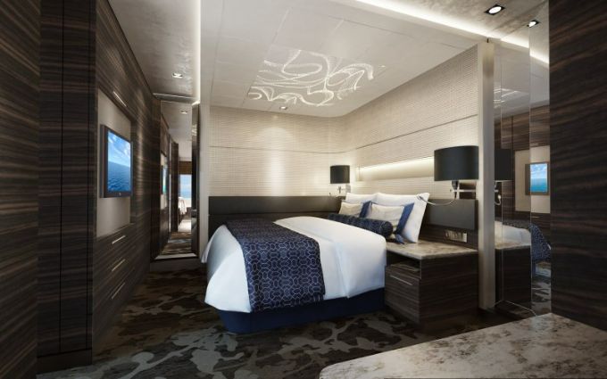 オーシャンビューまたはそれ以上のお部屋がご利用いただけます。 ※ご予約のスイートルームのデッキは未定で、出航前日までに決定されます。