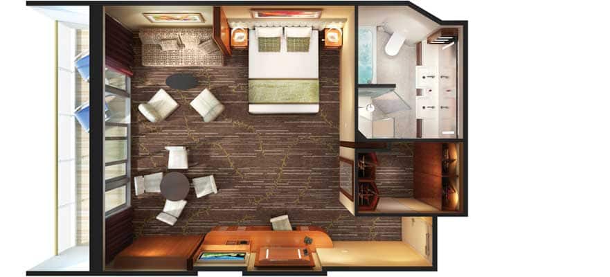 クラブバルコニースイート以上のお部屋がご利用いただけます。 ※ご予約のステートルームのデッキは未定で、出航前日までに決定されます。 ※眺望が全体または部分的にさえぎられている場合があります。