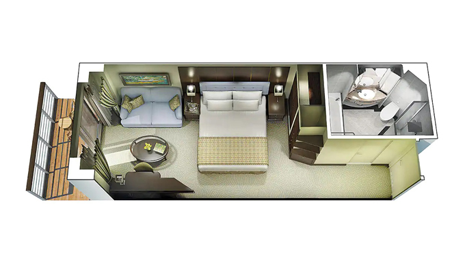 海側ツインまたはクイーンサイズ / ベランダ・バスタブ付 / 26㎡+ベランダ4㎡ / 7階