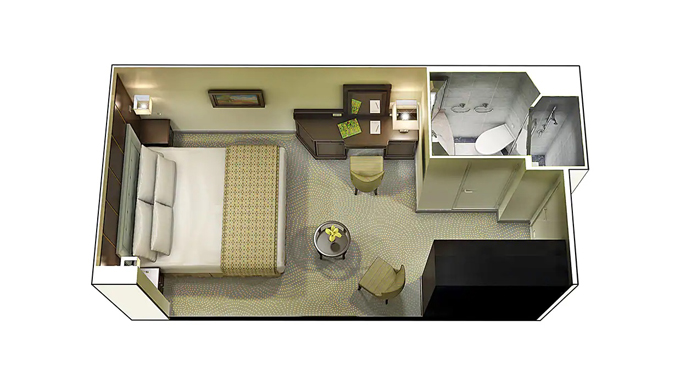 内側ツインまたはクイーンサイズ / シャワー付 / 16㎡ / 8階
