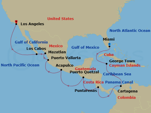 パナマ運河( マイアミ/フロリダ州 ~ ロサンゼルス/カリフォルニア州 )