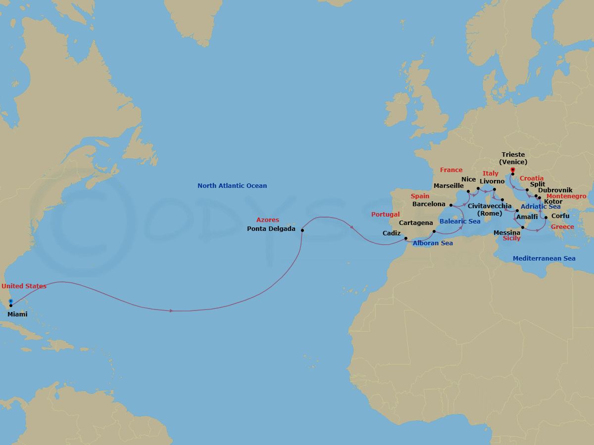 大西洋横断( フォート・ローダデール/マイアミ/フロリダ州 ~ トリエステ/ベニス )