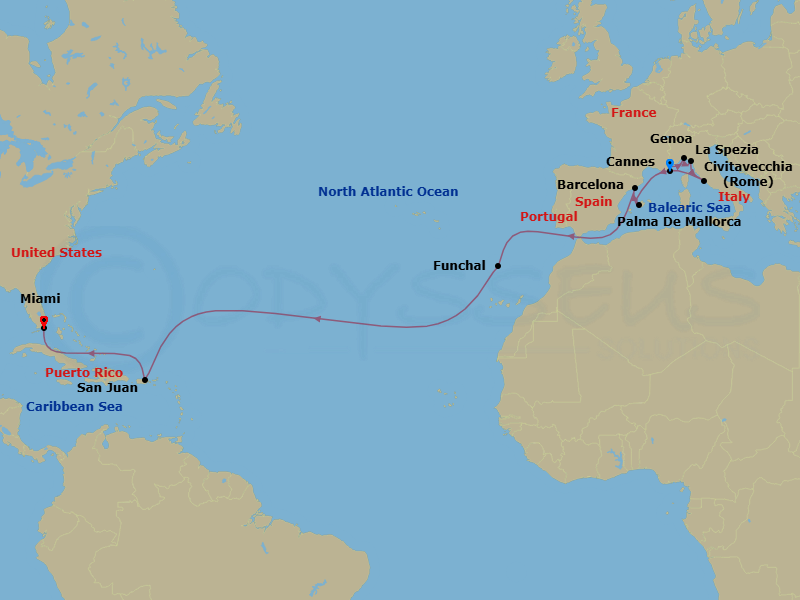 西地中海( チビタベッキア/ローマ ~ マイアミ/フロリダ州 )