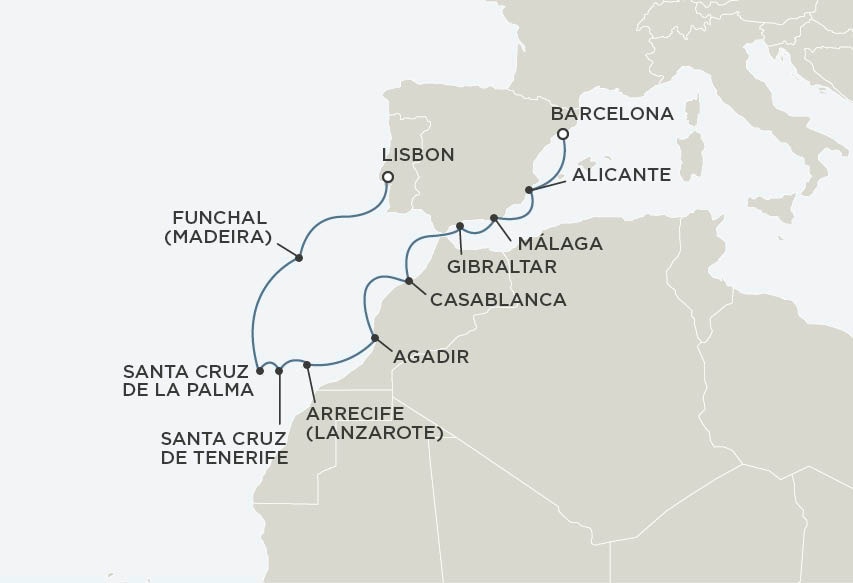 <オンライン予約可能>初冬の爽やかな空気に包まれたバルセロナを出航し、アリカンテやマラガといった情緒あるスペイン各地から、ジブラルタル、そして異国情緒あふれるカサブランカやアガディールへと続く北アフリカの魅力をたどりながら、カナリア諸島の多彩な自然美、マデイラ島の優雅な風景を経てリスボンへ向かうこの航路は、穏やかな季節にじっくりと寄港地の文化と景色を楽しみつつ、全室オーシャンビューのセブンシーズ・ナビゲーターで過ごす時間そのものが旅の贅沢となる、心地よい余韻が続く13日間です。