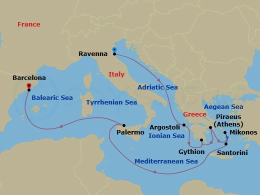 西地中海( ラヴェンナ ~ バルセロナ ) Breathtaking Greek Isles