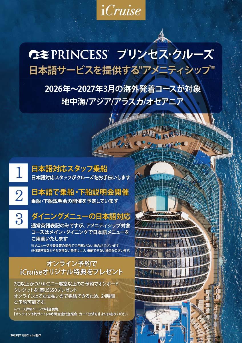 【プリンセス】地中海でも嬉しい日本語サービス:アメニティシップ拡大へ(日本語対応スタッフ/日本人向け乗下船説明会/日本語メニュー)