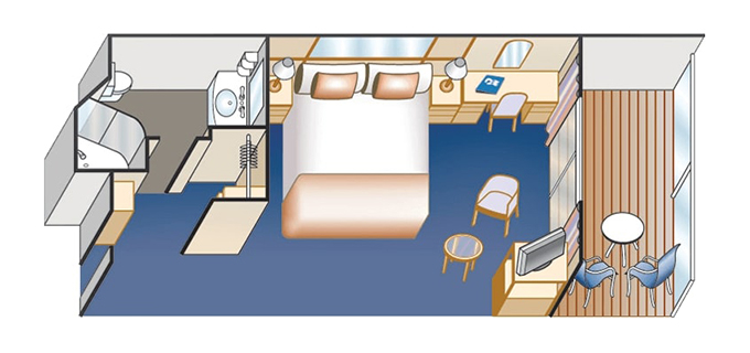 海側ツインまたはダブル / バルコニー・バスタブ付 / 56~57㎡(バルコニー含む) / 9階