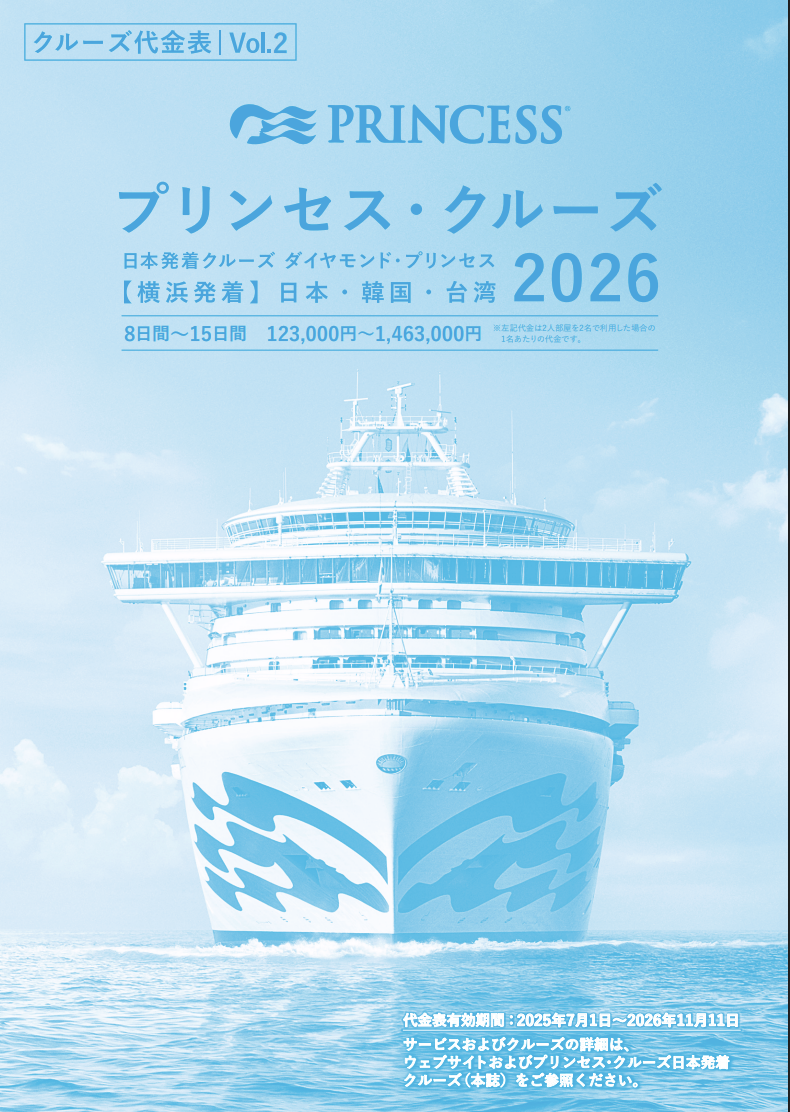NEWS新着情報 2025/11/04お知らせ 【プリンセス】地中海でも嬉しい日本語サービス:アメニティシップ拡大へ(日本語対応スタッフ/日本人向け乗下船説明会/日本語メニュー) 2025/10/10お知らせ 【iCruise-News】秋のお買い得キャンペーン|プリンセス・クルーズ/キュナード・ライン/シーボーン 2025/10/09キャンペーン・特集 【プリンセス】最大半額の直前割引『LAST MINUTE DEALS 』10/9(木)更新 ダイヤのシンガポール発着も対象に 2025/09/25キャンペーン・特集 【プリンセス】話題の夏休み皆既日食クルーズも対象『LAST CHANCE』最大20万円以上の大幅割引 2025/09/05お知らせ 【iCruise-News】≪直前割≫キュナード|≪2隻体制≫プリンセス27年日本発着|≪最大半額≫バイキング Gアジア|≪まだ間に合う≫日本船年末年始