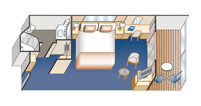 海側ツインまたはダブル / バルコニー(視界が遮られます)・シャワー付 / 20~23㎡(バルコニー含む) / 9階