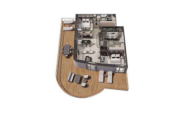 海側キングサイズ(マスターベッドルーム)+海側キングサイズまたはツイン(セカンドベッドルーム) / バルコニー・バスタブ付 / 292.7㎡+バルコニー120㎡ / 14階