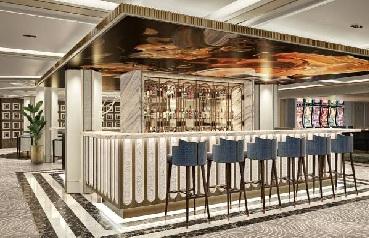 上質な座席が磨き上げられた大理石のカウンターを囲み、棚には美しく輝くクリスタルボトルが並びます。バーの天井はキャンバスのように、現代の名作絵画があしらわれており、思わず視線を引きつけます。プレステージ・ラウンジとカジノの間に位置し、やわらかな音楽が心地よく流れる空間で、こだわりのカクテルを味わいながら、ご友人との会話をゆったりとお楽しみいただけます。