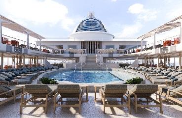 広々としたチーク材のプールデッキには、大きな温水プールと2つのジャグジーがあり、洋上でも最大級の規模を誇ります。プールバーも設けられ、カクテルや軽食を楽しみながら、太陽の光を浴びたり、海風を感じたりと、贅沢なリラックスタイムを満喫できます。卓球台やデッキチェアも完備で、アクティブな楽しみと穏やかな憩いの時間が融合した、思い思いの過ごし方が叶う空間です。