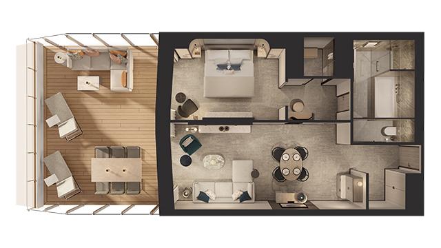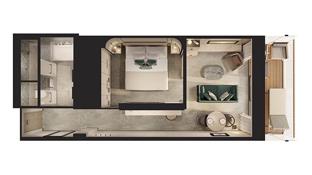 海側ツインまたはダブル / テラス・シャワーブース付 / スイート27.3㎡+テラス4.8~10㎡ / 5・6・7・8・9階