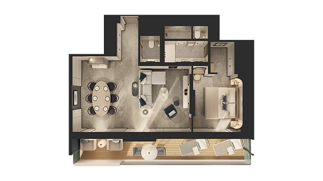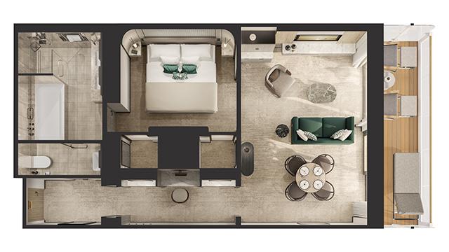 海側ツインまたはダブル / テラス・バスタブ付 / スイート52㎡+テラス8.4~18.5㎡ / 6・7・8・9階