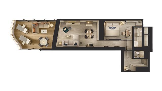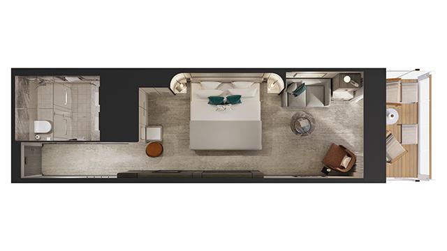 海側ツインまたはダブル / テラス・バスタブ付 / スイート48~64㎡+テラス10~19㎡ / 7階