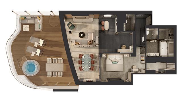 海側ツインまたはダブル / テラス・バスタブ付 / スイート68~96㎡+テラス54~67㎡ / 7・8・9階