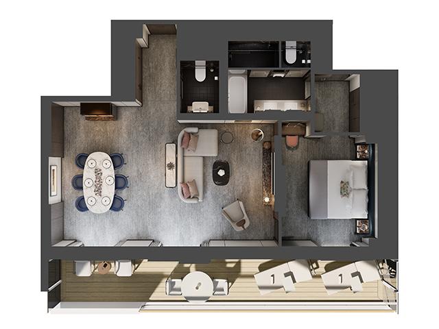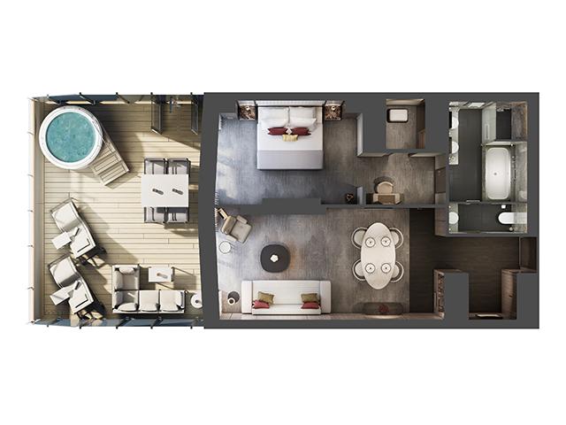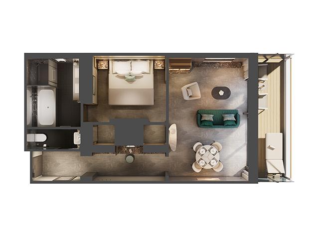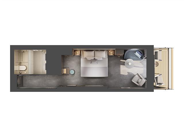海側ツインまたはダブル / テラス・バスタブ付 / スイート52㎡+テラス8.4~18.5㎡ / 6・7・8・9階