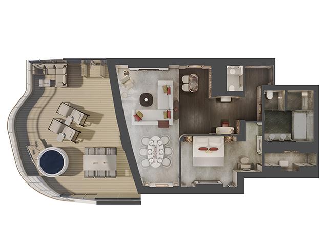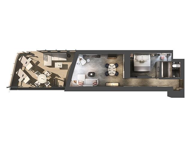 海側ツインまたはダブル / テラス・バスタブ付 / スイート48~64㎡+テラス10~19㎡ / 7階