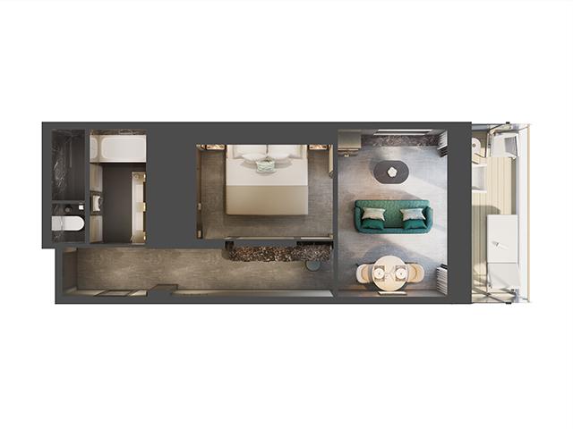 海側ツインまたはダブル / テラス・シャワーブース付 / スイート27.3㎡+テラス4.8~10㎡ / 5・6・7・8・9階