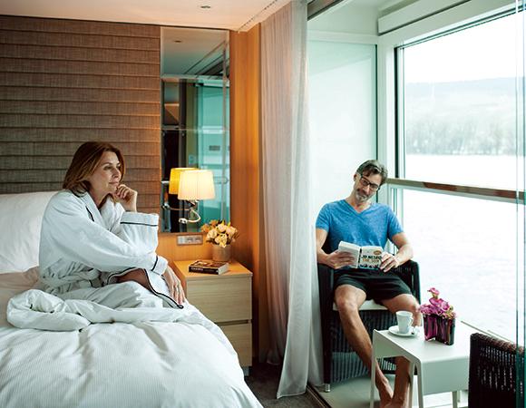 シーニック・クルーズの客室はヨーロッパの客船で最もゆったりとしており、80%以上がバルコニー付きのスイートです。崇高な風景を眺めながらの朝食や、沈む太陽にワイングラスを傾けるなどプライベートの時間を存分に楽しめます。