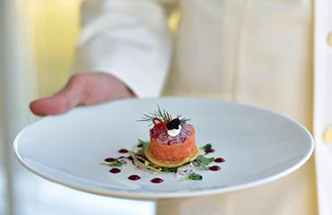 ドレスアップして楽しむ本格ディナーから手づくりのピザを楽しむカジュアルな食事までさまざまなグルメサービスを提供しています。日々の寄港地で仕入れた新鮮な食材で季節感にも溢れています。お部屋でのルームサービスも24時間お楽しみいただけます。