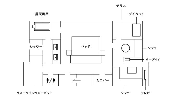 海側ツイン テラス・露天風呂付 約44㎡+テラス約6㎡ 1・2階