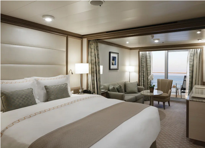 海側ツインまたはキングサイズ・クイーンサイズ / ベランダ・バスタブ付 / 124㎡+ベランダ18㎡ / 7階
