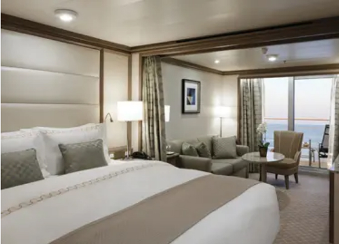 ■ベランダ ※一部のベランダ・スイートは3名様でご利用いただけます。 ※他のベランダ・スイートと客室の仕様は同じですが、デラックス・ベランダ・スイートは船中央付近に位置しています。